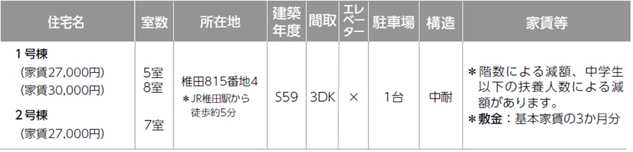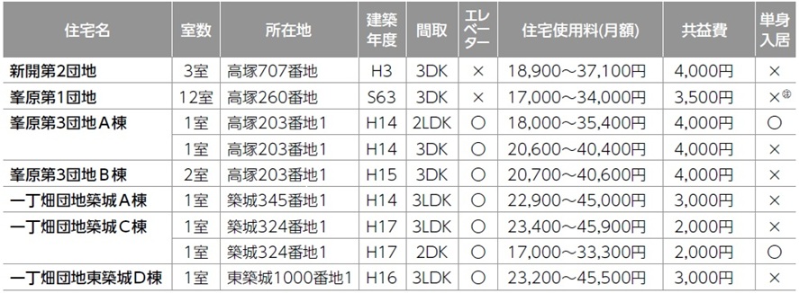 (注)2人以上の世帯入居を優先し、応募がない場合は単身入居も可