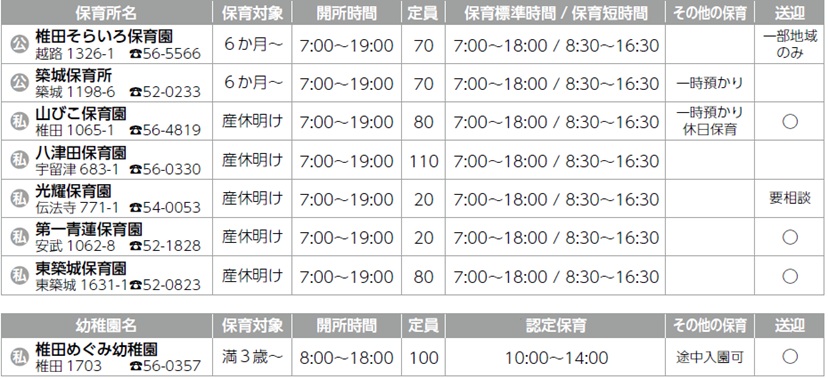 ◇町内保育所・幼稚園 (公)…町立 (私)…私立(令和7年10月1日現在)