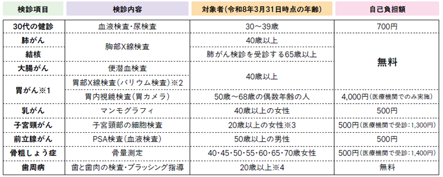 ※1:50~68歳の偶数年齢の人は胃部X線検査か胃内視鏡検査のどちらかを選択して受診可。