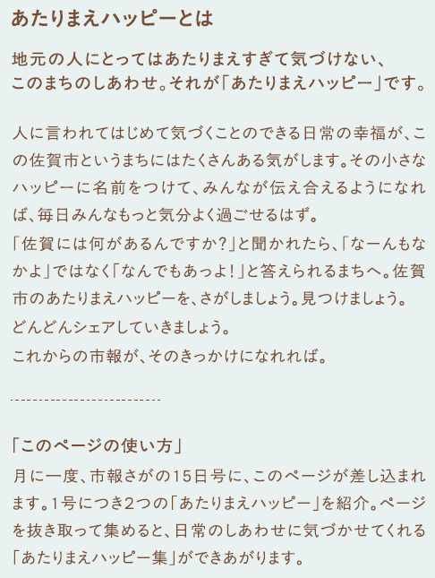 くらし 佐賀市の#あたりまえハッピー #19 11/27 前の記事 次の記事 発行日 : 2026年01月15日 自治体名 : 佐賀県佐賀市 広報紙名 : 市報さが 令和8年1月15日号 Tweet シェアする 図書館だより 佐賀市の#あたりまえハッピー #20