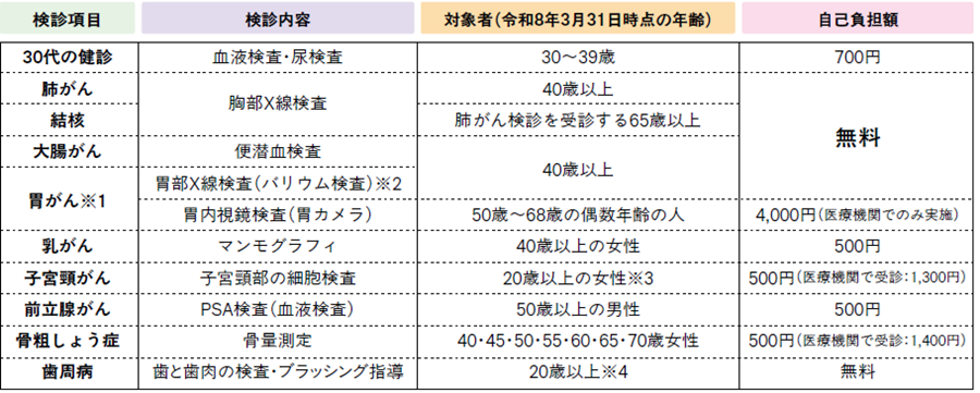 ※1 50~68歳の偶数年齢の人は胃部X線検査か胃内視鏡検査のどちらかを選択して受診可。