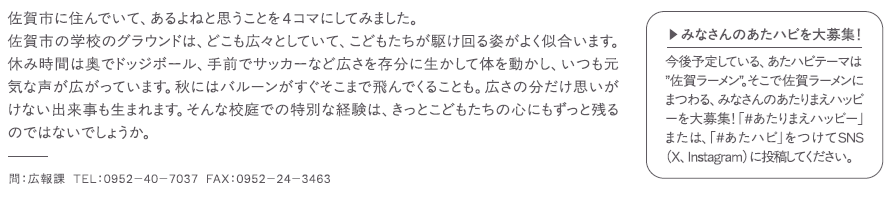 くらし 佐賀市の#あたりまえハッピー #14 12/28 前の記事 次の記事 発行日 : 2025年10月15日 自治体名 : 佐賀県佐賀市 広報紙名 : 市報さが 令和7年10月15日号 ※詳細は本紙をご覧ください。 Tweet シェアする 佐賀市の#あたりまえハッピー #13 子育て支援センターNAVI 11月の予定『ゆめ・ぽけっと』