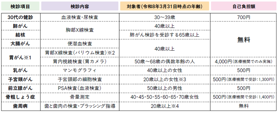 ※1:50~68歳の偶数年齢の人は胃部X線検査か胃内視鏡検査のどちらかを選択して受診可。