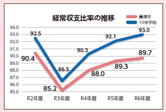 令和6年度の経常収支比率は、普通交付税や地方特例交付金などの歳入が増加したものの、人件費や公債費などの歳出が増加し、自由に使うことができる一般財源が減少したため、悪化しました。