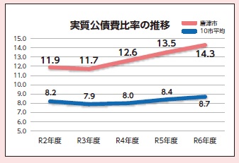 令和6年度の実質公債費比率は、元利償還金の増加及び臨時財政対策債発行可能額の減少などにより、悪化しました。