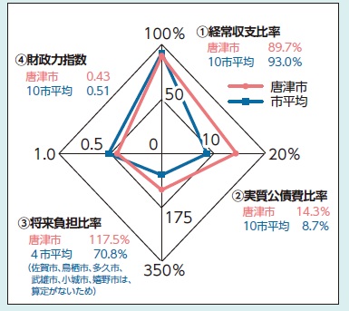 「唐津市財政計画」(計画期間令和6年度まで)では、計画実現に向けた、具体的な数値目標を設定しています。財政計画の詳細は、市ホームページを確認してください。