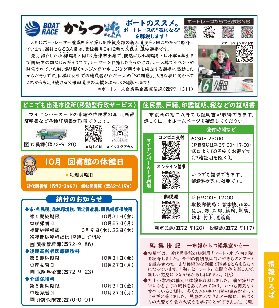 くらし 市報からつ 令和7年10月号(Vol.249)P.22 21/23 前の記事 次の記事 発行日 : 2025年10月01日 自治体名 : 佐賀県唐津市 広報紙名 : 市報からつ 令和7年10月号(Vol.249) Tweet シェアする 市報からつ 令和7年10月号(Vol.249)P.21 市報からつ 令和7年10月号(Vol.249)P.23