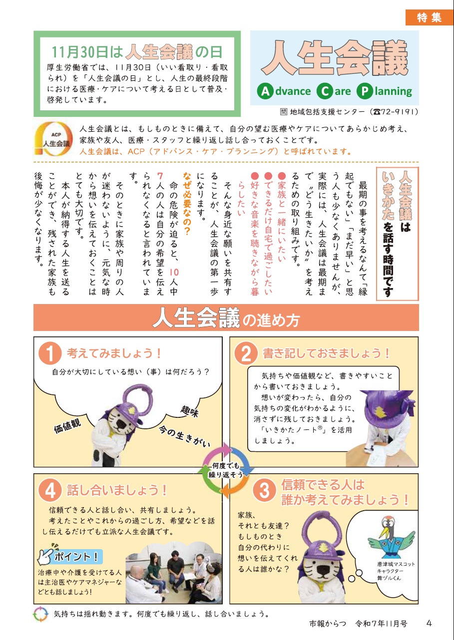 くらし 市報からつ 令和7年11月号(Vol.250)P.4 4/24 前の記事 次の記事 発行日 : 2025年11月01日 自治体名 : 佐賀県唐津市 広報紙名 : 市報からつ 令和7年11月号(Vol.250) Tweet シェアする 市報からつ 令和7年11月号(Vol.250)P.3 市報からつ 令和7年11月号(Vol.250)P.5