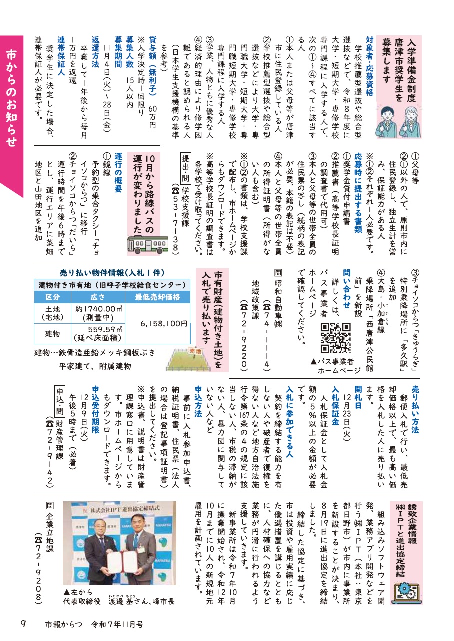 くらし 市報からつ 令和7年11月号(Vol.250)P.9 9/24 前の記事 次の記事 発行日 : 2025年11月01日 自治体名 : 佐賀県唐津市 広報紙名 : 市報からつ 令和7年11月号(Vol.250) Tweet シェアする 市報からつ 令和7年11月号(Vol.250)P.8 市報からつ 令和7年11月号(Vol.250)P.10