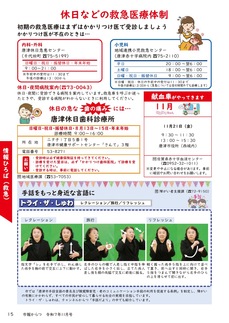 健康 市報からつ 令和7年11月号(Vol.250)P.15 15/24 前の記事 次の記事 発行日 : 2025年11月01日 自治体名 : 佐賀県唐津市 広報紙名 : 市報からつ 令和7年11月号(Vol.250) Tweet シェアする 市報からつ 令和7年11月号(Vol.250)P.14 市報からつ 令和7年11月号(Vol.250)P.16