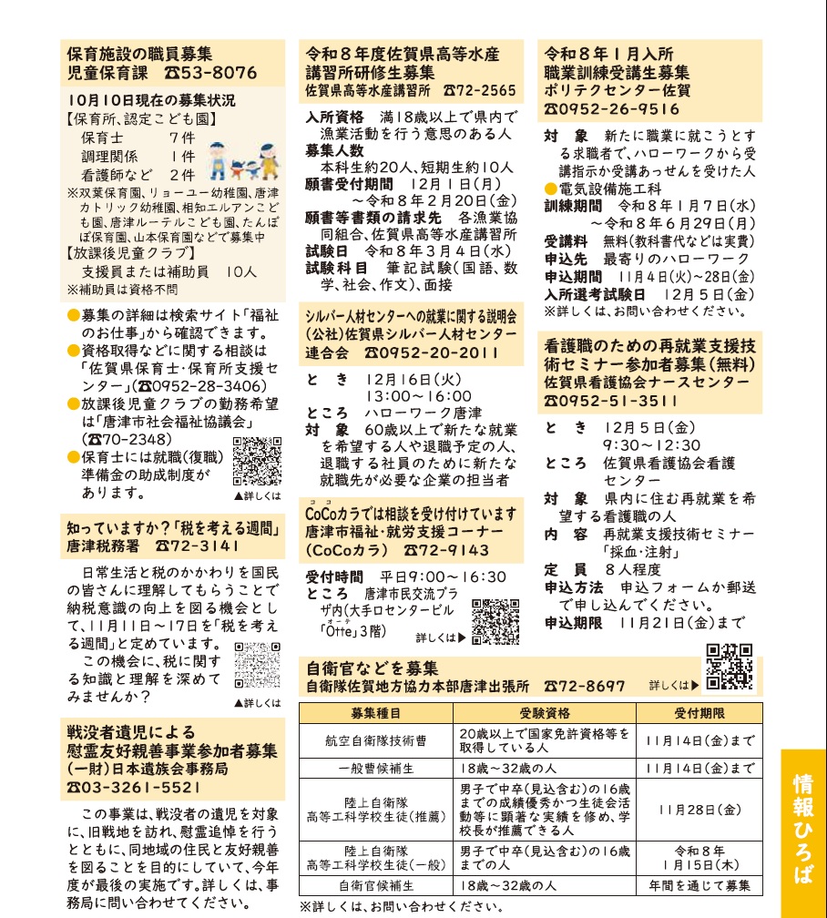 くらし 市報からつ 令和7年11月号(Vol.250)P.20 20/24 前の記事 次の記事 発行日 : 2025年11月01日 自治体名 : 佐賀県唐津市 広報紙名 : 市報からつ 令和7年11月号(Vol.250) Tweet シェアする 市報からつ 令和7年11月号(Vol.250)P.19 市報からつ 令和7年11月号(Vol.250)P.21