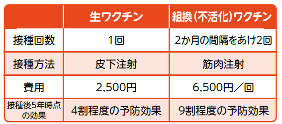 ワクチンの種類・料金: