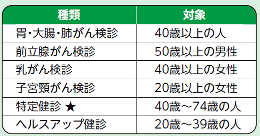 ★特定健診は国民健康保険加入者のみ。同保険以外の人は、加入している健康保険の保険者に問い合わせください