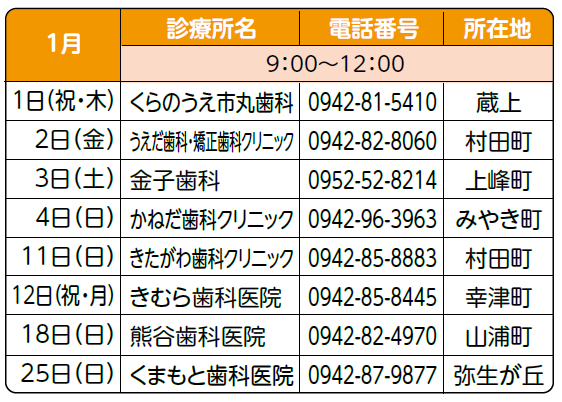 ■鳥栖・三養基地区内歯科休日診療当番医