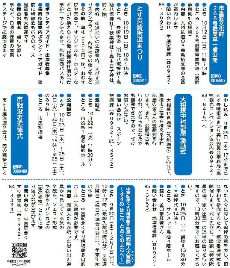 くらし 情報ひろば(1) 20/39 前の記事 次の記事 発行日 : 2025年09月15日 自治体名 : 佐賀県鳥栖市 広報紙名 : 市報とす 令和7年10月号 Tweet シェアする とっとちゃんの環境かわら版(vol.72) 情報ひろば(2)