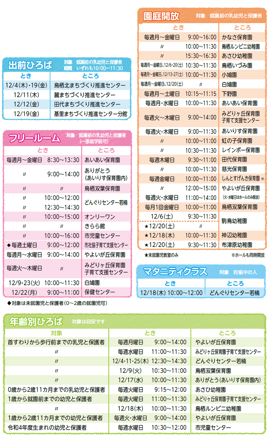 (1)12月4日(木)10時~12時、市児童センター(要申込【電話】0942-85-3616)