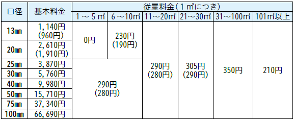 ※水道料金は、水道メーターの口径や使用する水量により変わります