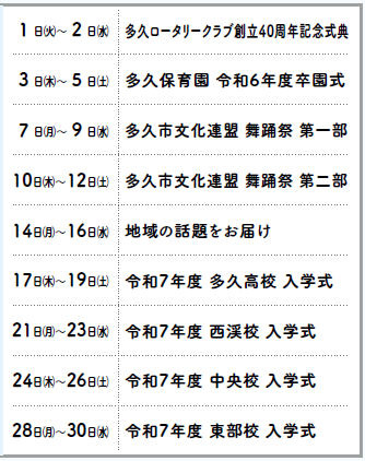 - 広報紙名 : 市報たく 令和7年4月号