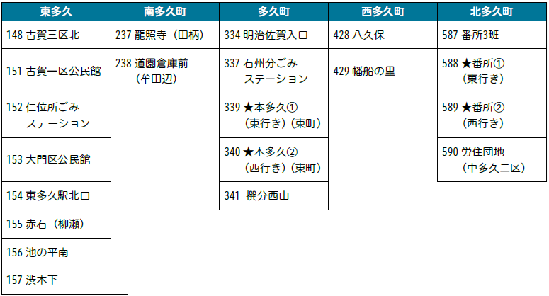 10月1日から新たに21箇所のバス停を設置します(他2箇所名称変更)。新たに設置するバス停のマップは、市役所および各町公民館にて配布するほか、多久市ホームページからも確認できます。