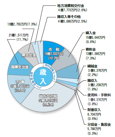 令和6年度一般会計決算は、歳入総額180億9,341万円、歳出総額177億2,936万円で歳入歳出差引額は3億6,405万円となり、翌年度へ繰り越すべき財源6,509万円を差し引いた実質収支は2億9,896万円の黒字となっています。