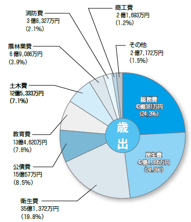 土木費…道路、橋りょうなど維持整備や下水道会計への繰出