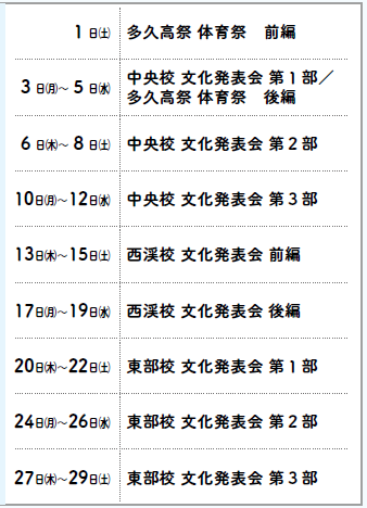 11月1日(土)、2日(日)、3日(月・祝) 6時50分~9時