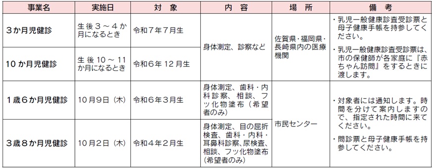 健診は、母子保健法に基づいて実施しています。発育確認のために必ず受けましょう。