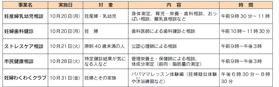 場所は、いずれも市民センターです。予約制で行いますので、いまりん子育てアプリで予約してください。