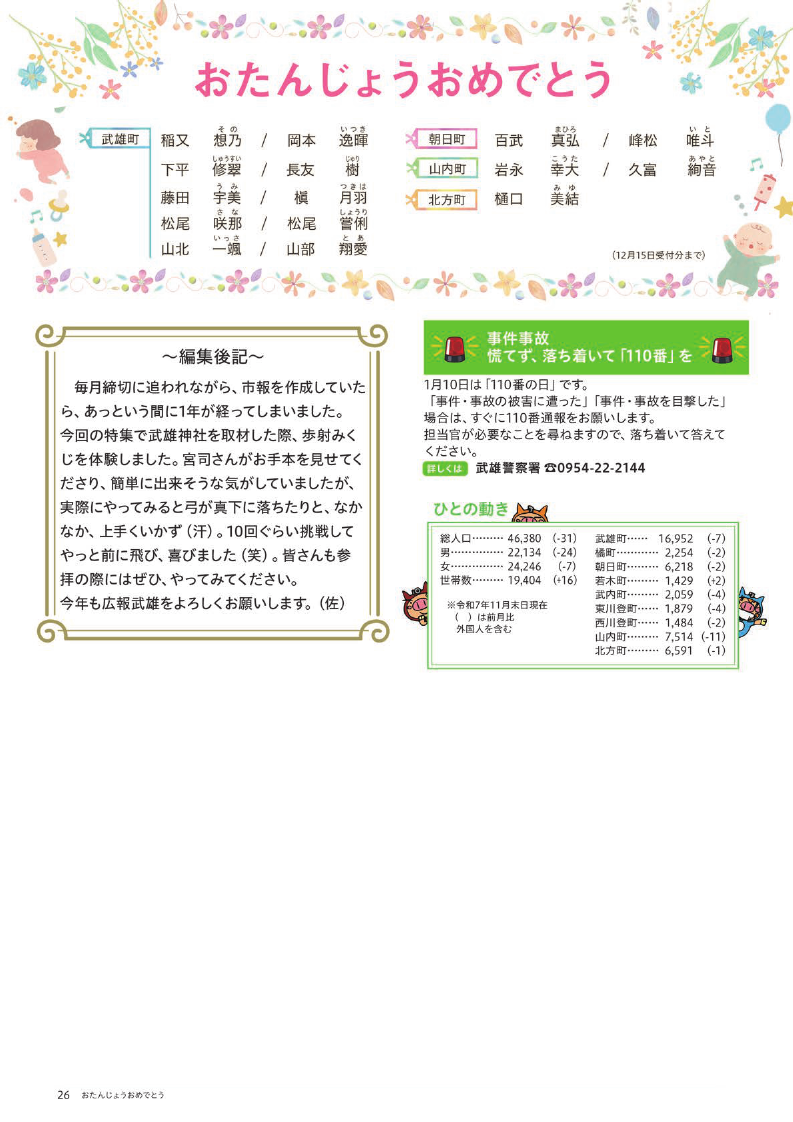くらし 広報武雄 令和8年1月号 P.26 27/28 前の記事 次の記事 発行日 : 2026年01月01日 自治体名 : 佐賀県武雄市 広報紙名 : 広報武雄 2026年1月号 Tweet シェアする 広報武雄 令和8年1月号 P.25 広報武雄 令和8年1月号 P.27