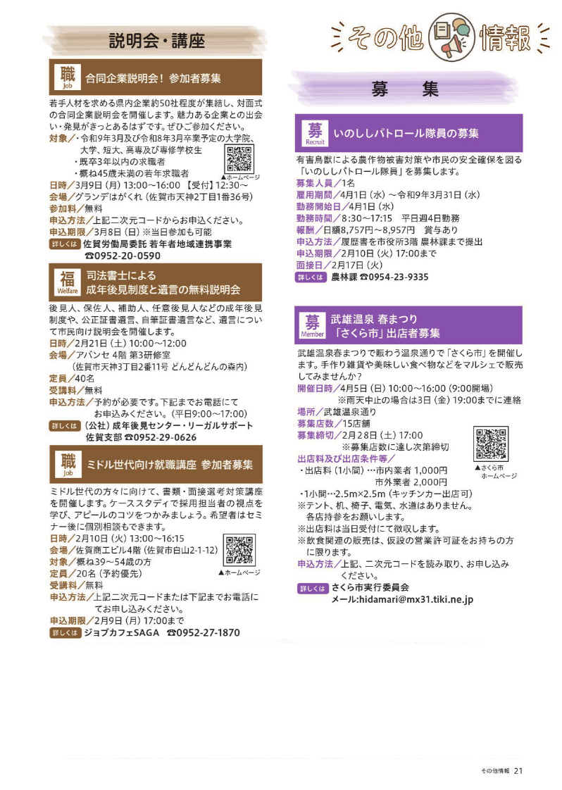 講座 広報武雄 令和8年2月号 P.21 22/30 前の記事 次の記事 発行日 : 2026年02月01日 自治体名 : 佐賀県武雄市 広報紙名 : 広報武雄 2026年2月号 Tweet シェアする 広報武雄 令和8年2月号 P.20 広報武雄 令和8年2月号 P.22