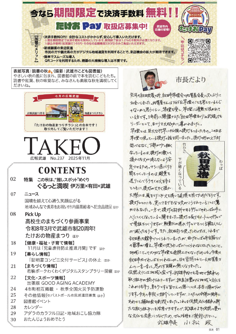 くらし 広報武雄 令和7年11月号 P.01 2/31 前の記事 次の記事 発行日 : 2025年11月01日 自治体名 : 佐賀県武雄市 広報紙名 : 広報武雄 2025年11月号 Tweet シェアする 広報武雄 令和7年11月号 表紙 広報武雄 令和7年11月号 P.02
