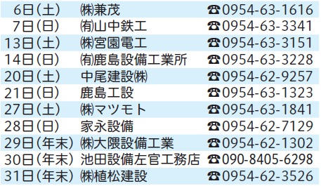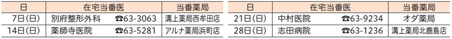 ※変更になる場合がありますので、受診の際は事前に、杵藤地区消防本部救急医療情報案内または在宅医へ電話で確認してください。
