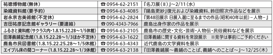 文化 [エイブルの木 2025 12月号 No.235]かしまぐるっとミュージアム 27/31 前の記事 次の記事 発行日 : 2025年12月01日 自治体名 : 佐賀県鹿島市 広報紙名 : 広報かしま 令和7年12月号 12月の鹿島市内の主な展示施設の展示情報を掲載します。 Tweet シェアする [エイブルの木 2025 12月号 No.235]鹿島市民図書館 ロゴ・キャッチコピーが完成!