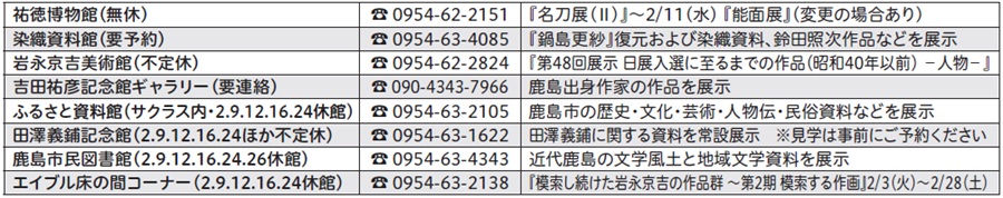 文化 [エイブルの木 2026 2月号 No.237]かしまぐるっとミュージアム 26/31 前の記事 次の記事 発行日 : 2026年02月01日 自治体名 : 佐賀県鹿島市 広報紙名 : 広報かしま 令和8年2月号 2月の鹿島市内の主な展示施設の展示情報を掲載します。 Tweet シェアする [エイブルの木 2026 2月号 No.237]鹿島市民図書館 ~飼い主のいない猫も幸せに~『幸猫プロジェクト』