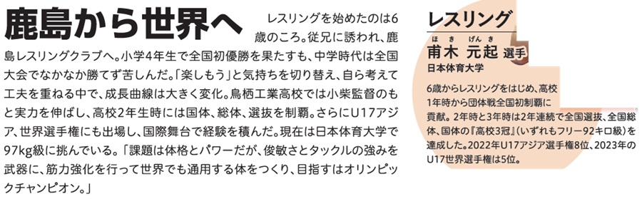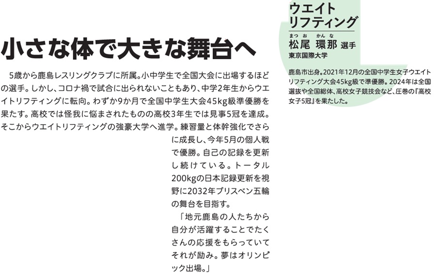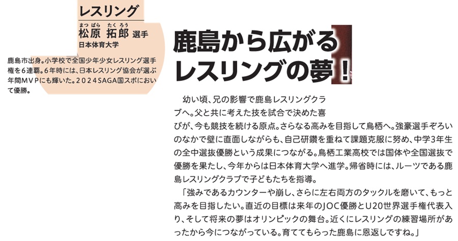 スポーツ [特集]SAGA SSP アスリート 躍動する鹿島のアスリートたち 1/35 次の記事 発行日 : 2025年10月01日 自治体名 : 佐賀県鹿島市 広報紙名 : 広報かしま 令和7年10月号 Tweet シェアする [市政トピックス]肥前鹿島駅前に『ひろばのたね』誕生!