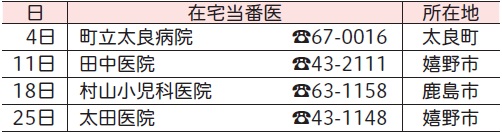 ※受診の際は事前に在宅当番医へ電話で確認してください。
