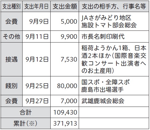 ◆令和7年度9月分の市長交際費