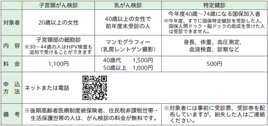 ※後期高齢者医療制度被保険者、住民税非課税世帯・生活保護世帯の人は、すべての検診が無料です。