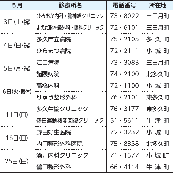 ※当番医が変更になる場合がありますので、最新情報は市ホームページで確認してください。また、受診する際は必ず医療機関に確認してください。