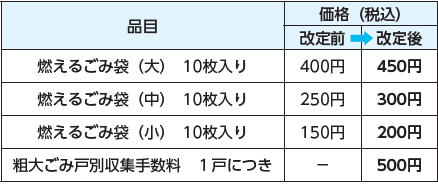 令和7年10月1日から指定ごみ袋などの価格を改定します。市民の皆さんにはご負担が増えることとなりますが、今後もごみの分別および減量化にご理解とご協力をお願いします。