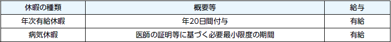 (注)上記休暇のほか、特別休暇、介護休暇、組合休暇があります。