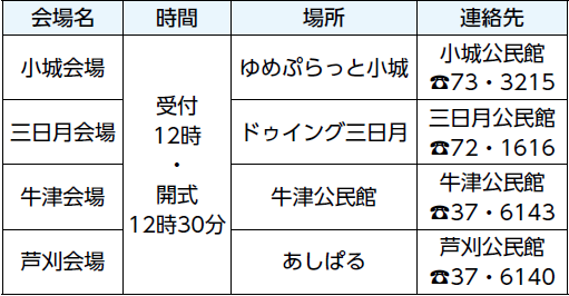 動画配信:当日は、式典映像をYouTubeでライブ配信します。お持ちのパソコンやスマートフォンでご視聴いただけます。YouTubeのURLは市ホームページでお知らせします。