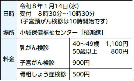 女性特有のがん検診(乳がん・子宮頸がん)を、女性の医師・技師・スタッフが担当して実施します。また、今回は骨粗しょう症検診も同時に実施します。