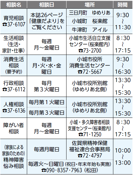 くらし 各種相談 32/47 前の記事 次の記事 発行日 : 2025年11月20日 自治体名 : 佐賀県小城市 広報紙名 : 広報「さくら」 No.255(2025年11月20日発行) 祝日・年末年始は開催していません Tweet シェアする こんなトラブルにご注意を!! 情報いろいろ〔お知らせ〕