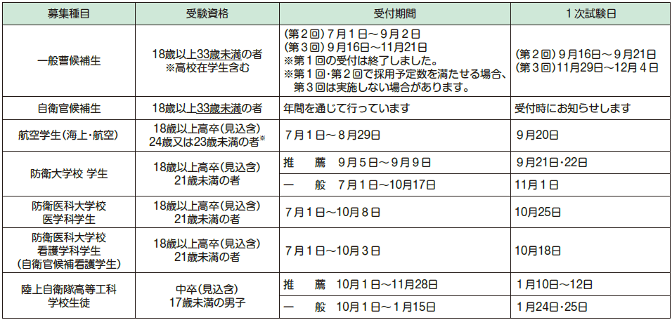 ※航空学生の応募資格(年齢)は、航空自衛隊が24歳未満、海上自衛隊が23歳未満です。