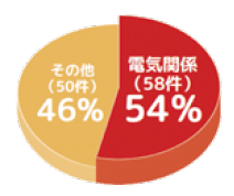 東日本大震災における本震による火災では、原因が特定された、108件のうち過半数は、電気関係の出火でした。