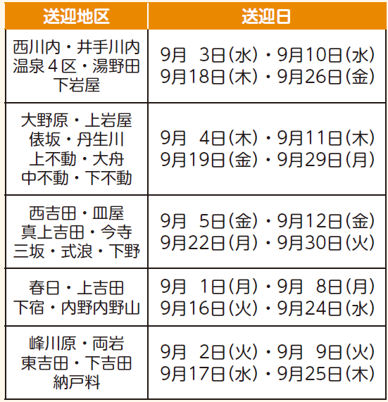 くらし 令和7年9月 嬉野老人福祉センター送迎表 37/41 前の記事 次の記事 発行日 : 2025年09月01日 自治体名 : 佐賀県嬉野市 広報紙名 : 市報うれしの 2025年9月号 【利用について】 対象者:60歳以上の市内在住者 利用料:1人1日 150円 利用時間:9:00~15:30 ※入浴は9:30~15:30 休館日:日曜日・祝日、第2・4土曜日、8/13~15、12/27~1/4 ※避難所となった場合など、臨時休館となることがあります。 連絡先:嬉野老人福祉センター 【電話】0954-42-2020 Tweet シェアする うれしのまるく通信 商工会青年部通信