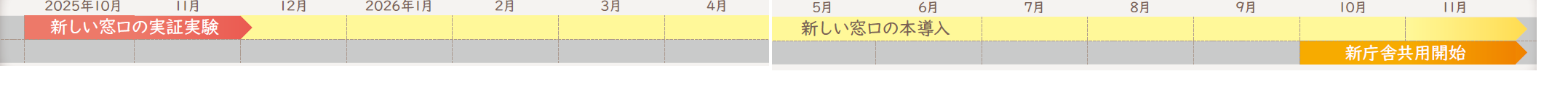 令和7年10月から塩田庁舎、嬉野庁舎の両庁舎において、新しい窓口の導入に向けた実証実験を行います。市民の皆様には、ご来庁された際にご不便をお掛けしますが、ご協力お願いいたします。
