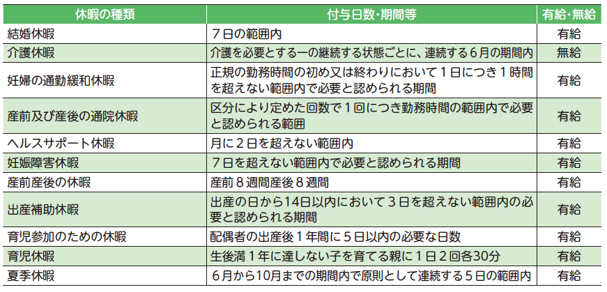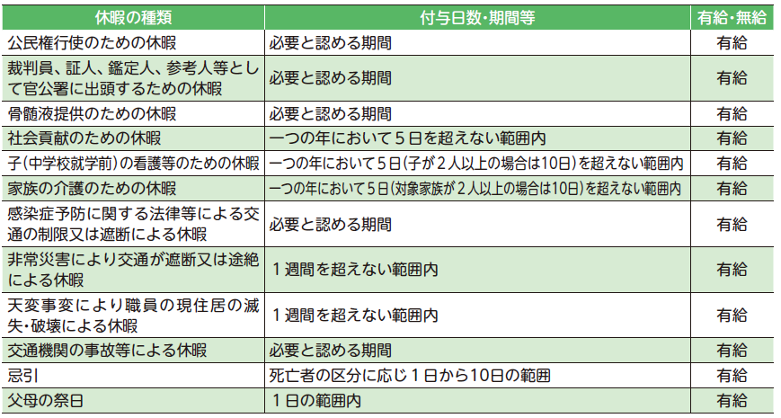 (2)特別休暇の概要(令和7年4月1日現在)