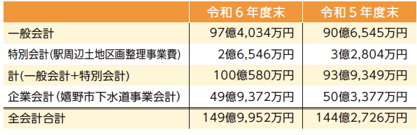 一般会計は、令和6年度の新規借入額は新庁舎建設に伴い合併特例債を全額発行したことで昨年度より大幅に増加し、また、市債残高も大きく増加しました。一方、元金償還額は減少しました。特別会計では、駅周辺土地区画整理事業が完了したことにより減少しました。企業会計においては、確実に償還を進めたことにより市債残高は減少しましたが、全会計でみると一般会計の影響が大きく、増加となりました。